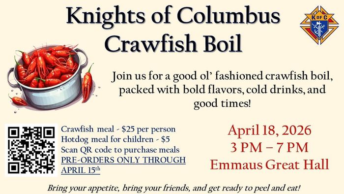 There's always something going on at Emmaus Catholic Parish. Get involved today, click the button below to find an event for you!